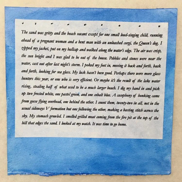 After creating ten pairings, we decided to choose one of our texts and move it in a new direction with the goal of producing an artist book, breaking apart the text (occasionally editing it), and creating new visuals. We used the same 6 x 6-inch format and started with no timetable. This did not last long. Artists Book House contacted us to share an unpublished collaboration. We created a schedule for our calls and due dates.