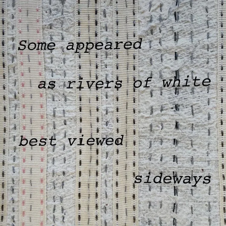 “Your piece is gorgeous and evocative. I am going to have fun with this. The stitching on top makes me think of the white sea gulls and the bottom ones, dried grasses. Yet they look like medical stitches.” Rose to Linda text, Oct. 21, 2020