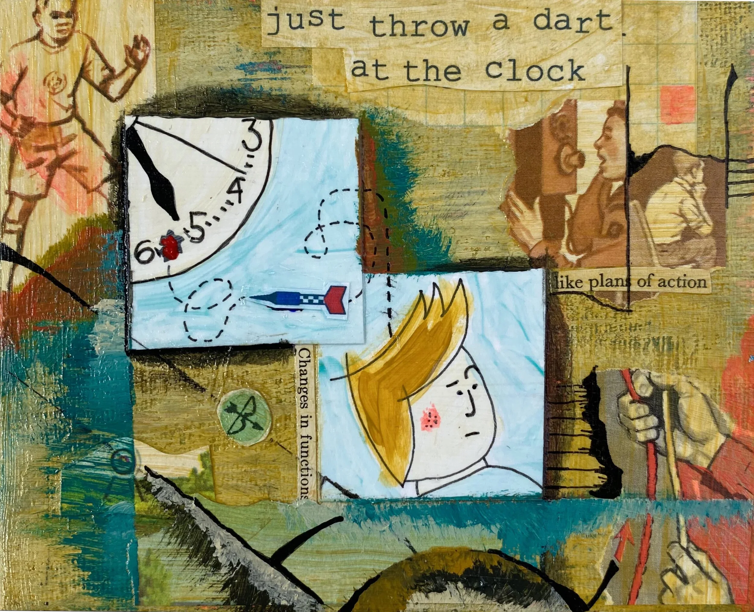 Now Archer’s aiming, aiming for the dead center of the clock face and the second hand is ticking, jutting forward from second to second like it’s laughing and he’s got the dead center in his sights and he winds up to throw and he steps with his red socked foot forward and releases and shouts,